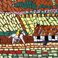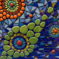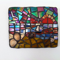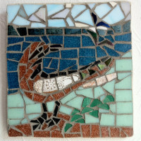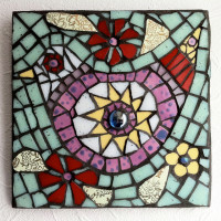 I like to use interesting combinations of materials in my mosaics often incorporating wonderful pieces of beach pottery found on the local shores. The qualities of the different materials themselves inform the nature of my work creating a lively play of colour, light, shape and texture. I take inspiration from many sources, much of it found in the patterns of nature and the ever-changing scenery around me.